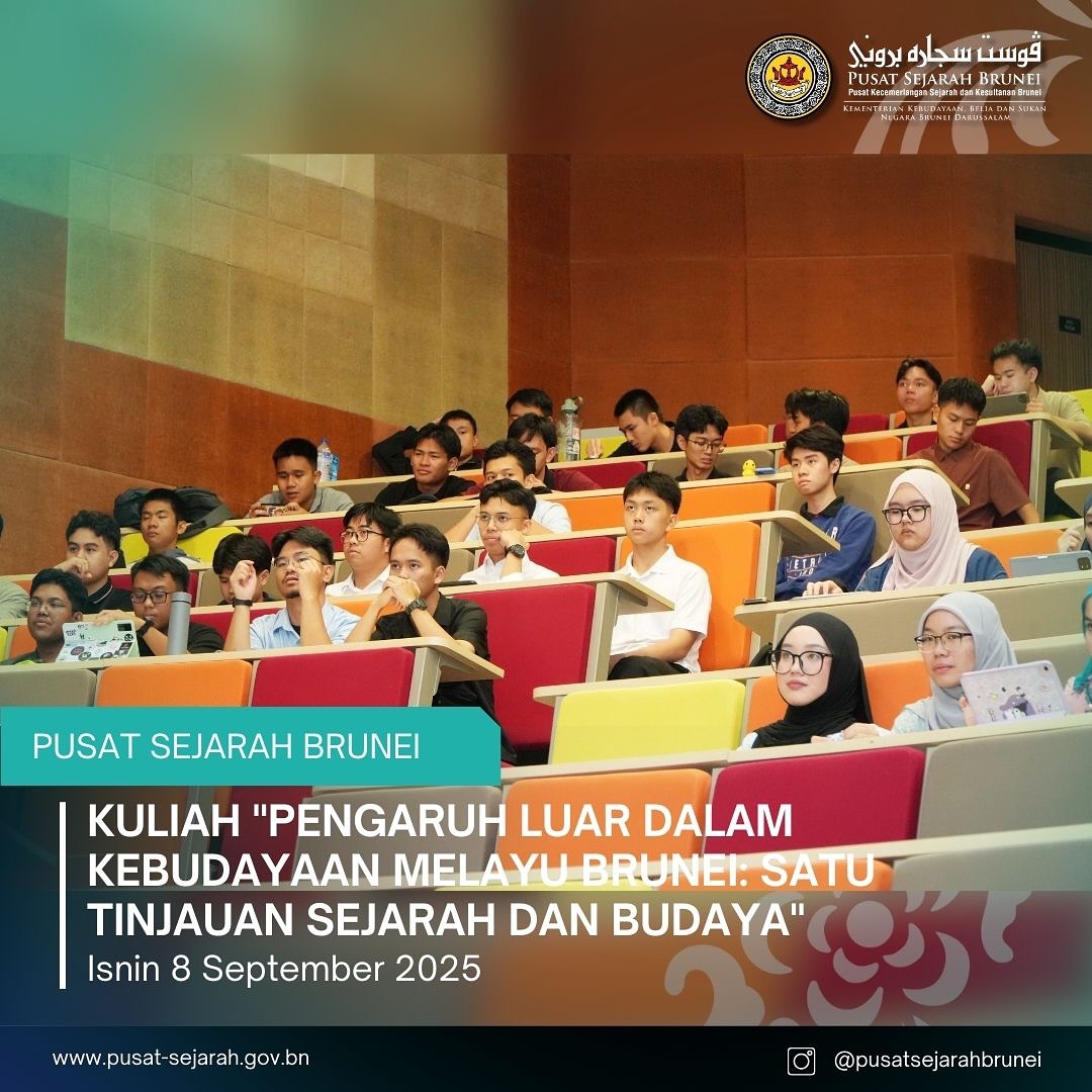 Isnin, 8 September 2025 - Pusat Sejarah Brunei telah diundang oleh Politeknik Brunei melalui Unit Pengajian Melayu Islam Beraja (MIB), Bahagian Pengajian Am untuk menyampaikan kuliah bertajuk “Pengaruh Luar dalam Kebudayaan Melayu Brunei: Satu Tinjauan Sejarah dan Budaya”. Kuliah disampaikan oleh Dayang Adibah binti Md. Jaafar, Pegawai Sejarah, Bahagian Penyelidikan dan Dokumentasi, PSB.